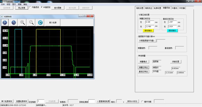 利用激光三角反射原理,激光束被放大成一條激光線投射到被測物體表面上,反射光透過高質(zhì)量光學(xué)系統(tǒng),投射到成像矩陣上,經(jīng)計(jì)算得到傳感器到被測量表面的距離(Z軸)和沿著激光線的位置信息(X軸),移動被測量物體或者輪廓儀探頭,就可以得到一組三維測量值。