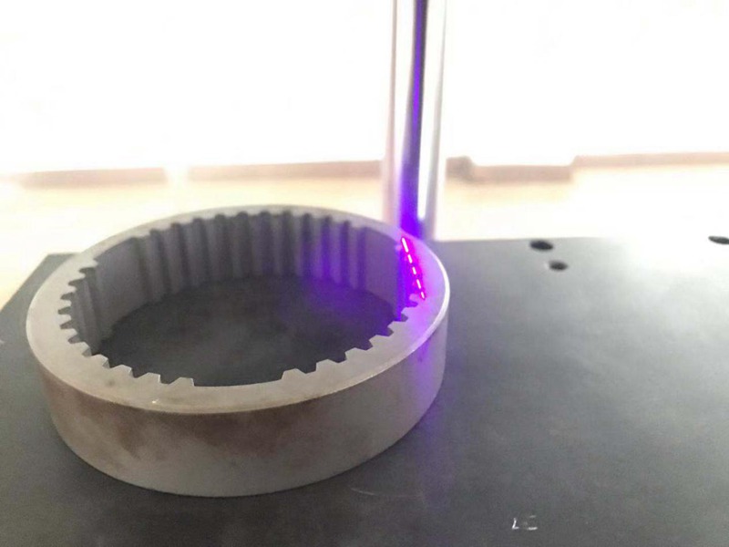 利用激光三角反射原理,激光束被放大成一條激光線投射到被測物體表面上,反射光透過高質(zhì)量光學(xué)系統(tǒng),投射到成像矩陣上,經(jīng)計算得到傳感器到被測量表面的距離(Z軸)和沿著激光線的位置信息(X軸),移動被測量物體或者輪廓儀探頭,就可以得到一組三維測量值。
