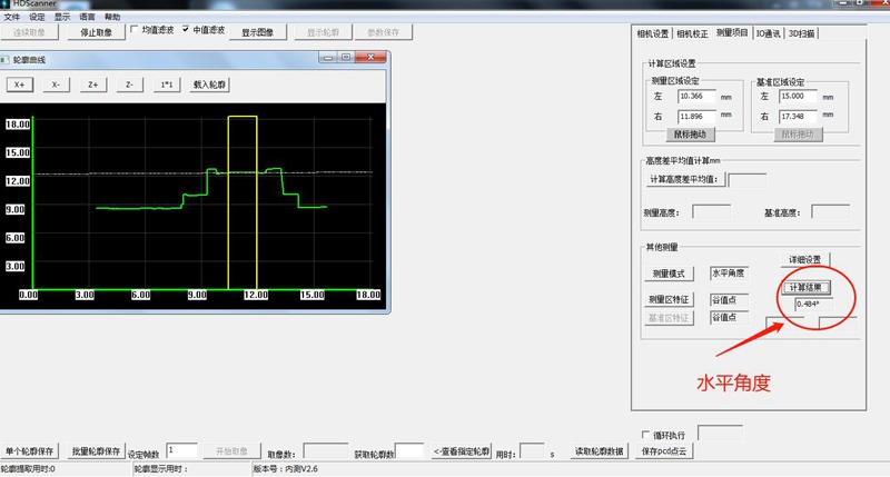 將手機CMOS放在激光輪廓線的下方,調(diào)整好位置獲取輪廓圖像。