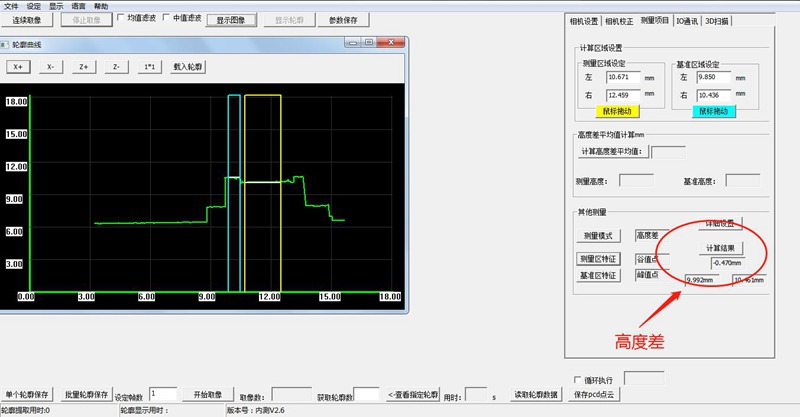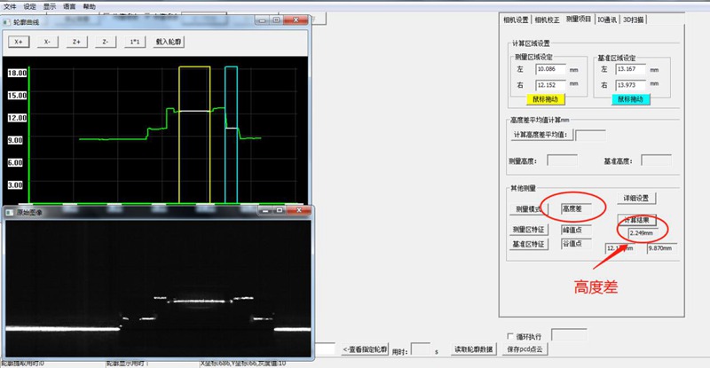 高度差:選取需要測量的兩個區(qū)域做差值,如上圖