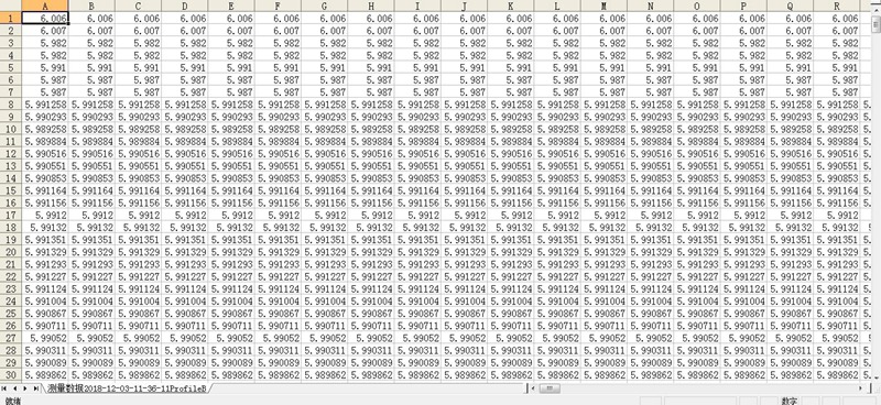 通過水平位移臺(tái)移動(dòng)工件,驗(yàn)證檢測速度約 50mm/s,設(shè)有600個(gè)輪廓數(shù)。每條輪廓1280個(gè)數(shù)據(jù)點(diǎn)。
