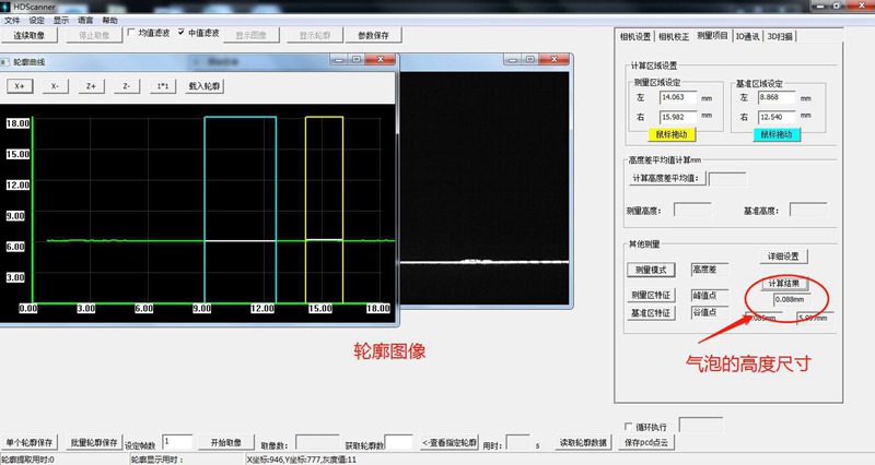 將產(chǎn)品放在激光線的檢測范圍內(nèi),通過檢測3D圖形,分析OK品和NG品。